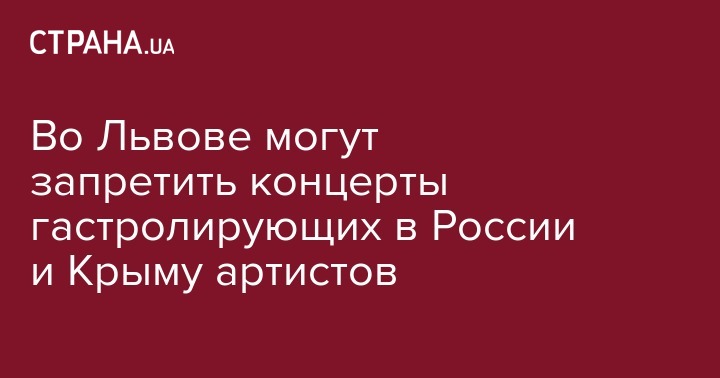 Во Львове могут запретить проведение концертов артистов, которые гастролируют на территории России, а также на полуострове Крым. Об этом на своей странице в социальной сети Facebook написала депутат Львовского горсовета Юлия Хомчин.