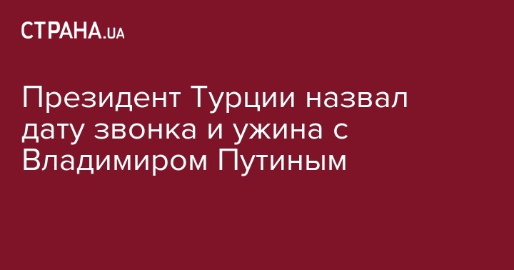Президент Турции назвал дату звонка и ужина с Владимиром Путиным