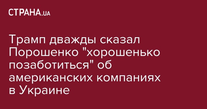 Президент Украины Петр Порошенко заявил, что Киев приветствует деятельность американских компаний на украинском рынке. В ответ президент США Дональд Трамп дважды посоветовал Порошенко "хорошенько позаботиться" об американском бизнесе.