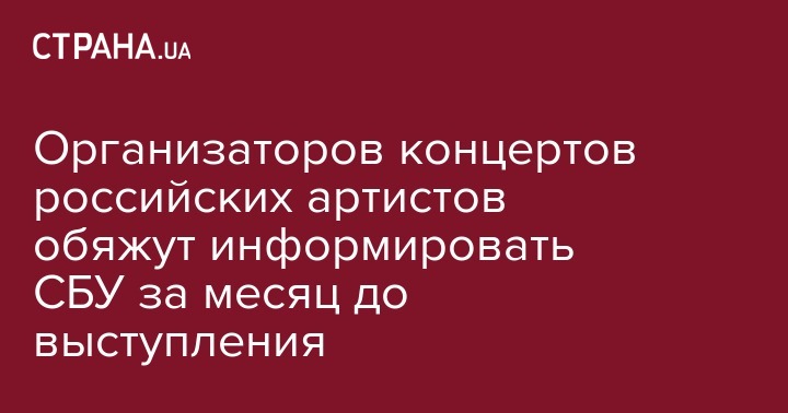 Организаторов концертов российских артистов обяжут информировать СБУ за месяц до выступления