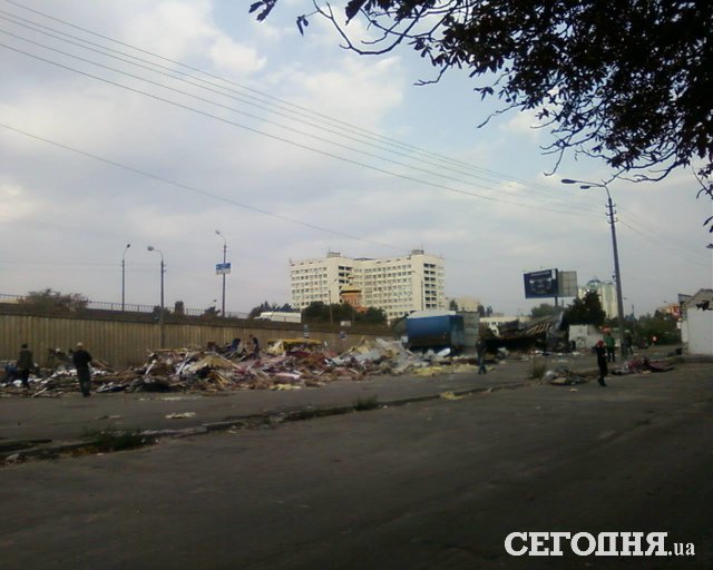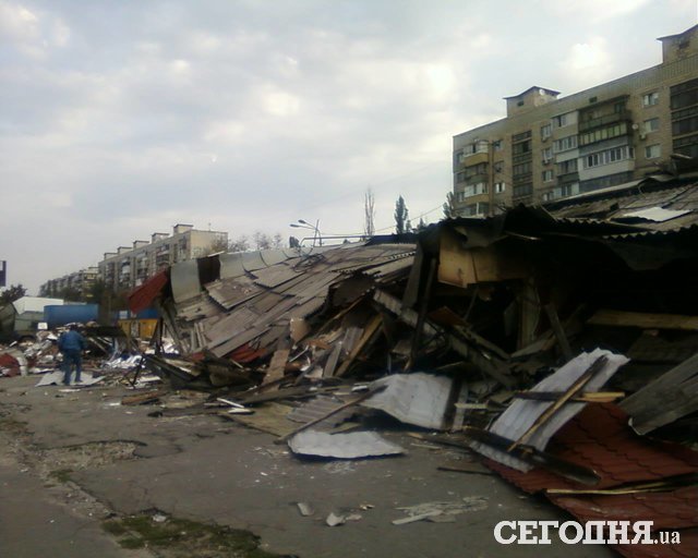 В Киеве на рынке "Юность" снесли МАФы с товаром. На руинах орудуют мародеры