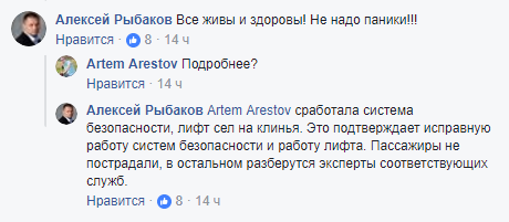 "Это подтверждает исправную работу систем безопасности и работу лифта. Пассажиры не пострадали, в другом разберутся эксперты соответствующих служб", - заверил он.