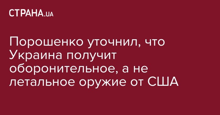 Петр Порошенко в интервью телеканалу Fox Business заявил, что Украина будет получать от США вооружение оборонительного, а не летального характера. Об этом сообщают РИА Новости.