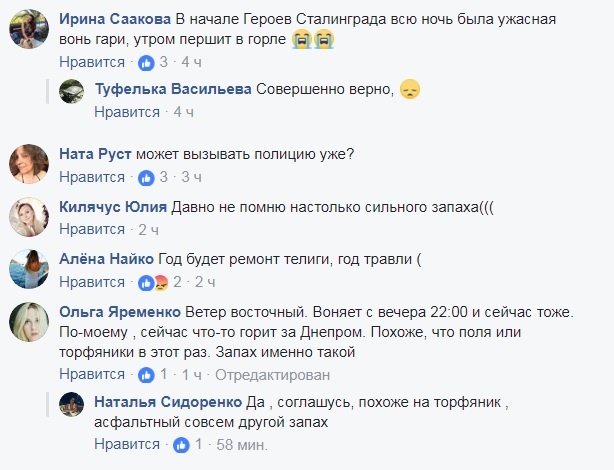 То ли о гари, то ли смоге сообщают и подписчики паблика "Смог на Оболони". Большинство пользователей соглашаются, что воняет как при пожаре торфяников или травы.