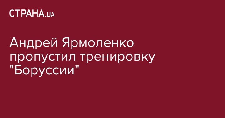 Украинский легионер дортмундской "Боруссии" Андрей Ярмоленко пропустил воскресную тренировку своей новой команды. Об этом передает официальный Twitter "шершней" RuhrNews BVB.
