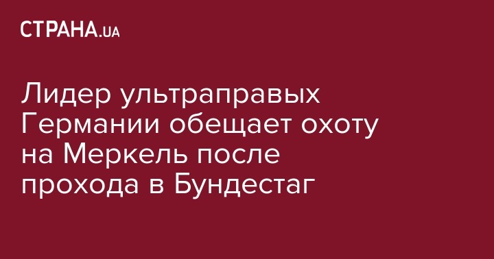 Лидер правой партии "Альтернатива для Германии" Александер Гауланд пообещал объявить на лидера консервативного блока Ангелу Меркель охоту. Об этом сообщает ТАСС.