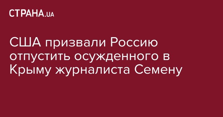 Соединенные Штаты Америки потребовали у России отменить приговор осужденному в Крыму украинскому журналисту Николаю Семене. Об этом сообщает Госдепартамент США.
