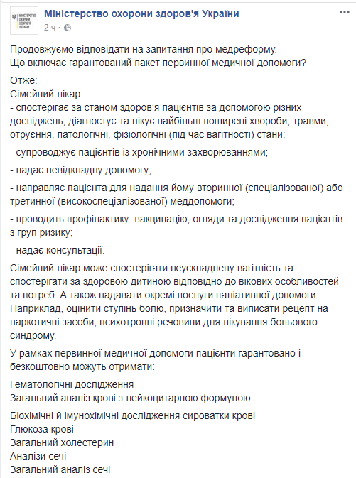Ранее Супрун рассказала, какие услуги останутся бесплатными после медреформы.