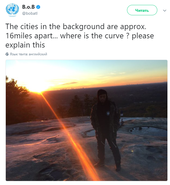 B.o.B неоднократно поднимал вопрос о форме планеты в Twitter. В январе 2016 года он опубликовал фотографию, на которой стоит на холме.