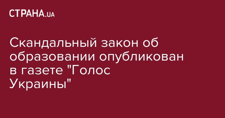 Официальная газета Верховной Рады "Голос Украины" опубликовала скандальный закон "Об образовании", из-за которого у Украины начался конфликт с румынами и венграми. Закон размещен на сайте газеты.