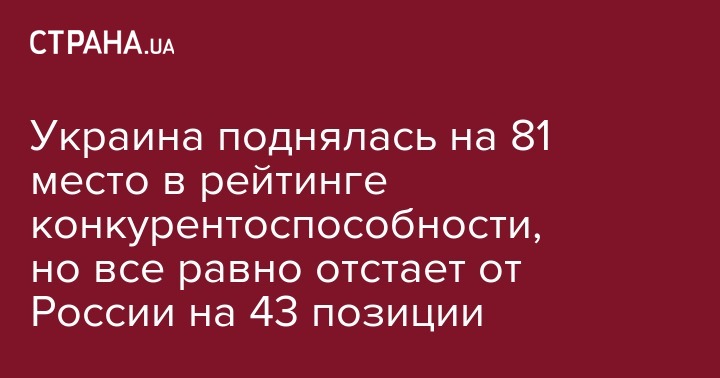 Украина поднялась на 4 позиции и заняла 81-е место в рейтинге конкурентоспособности.