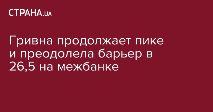 Гривна продолжает пике и преодолела барьер в 26,5 на межбанке
