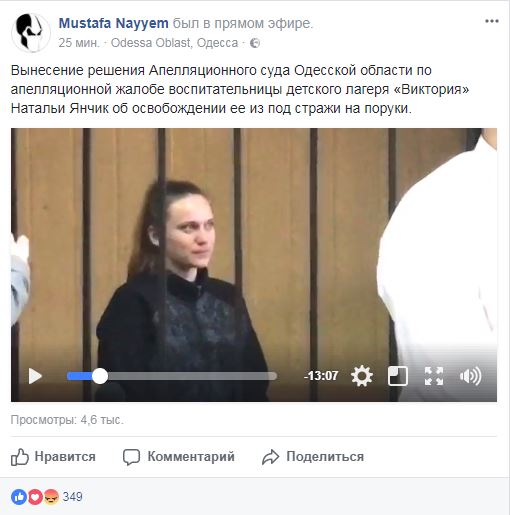 "Вынесение решения Апелляционного суда Одесской области по апелляционной жалобе воспитательницы детского лагеря "Виктория" Натальи Янчик об освобождении ее из под стражи на поруки", - сказано в сообщении.