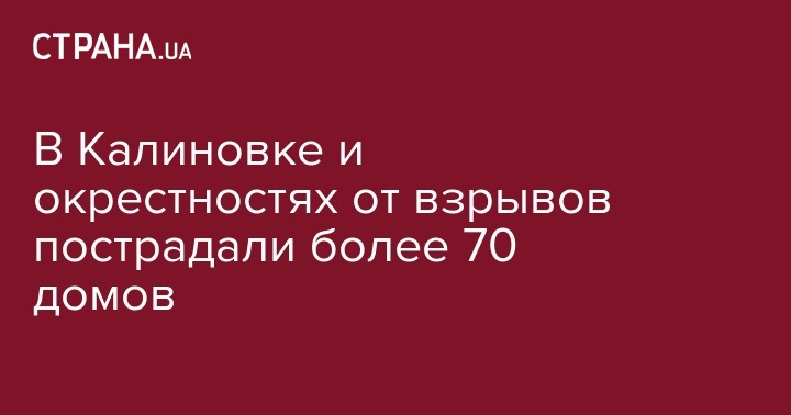 В населенных пунктах Винницкой области вокруг склада с боеприпасами в Калиновке после взрывов повреждены и разрушены более 70 зданий. Об этом сообщает пресс-служба полиции.