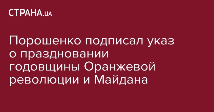 "Указ направлен на должное празднование в 2017 году Дня достоинства и свободы, чествование гражданского подвига участников "оранжевой революции" и "революции достоинства", учитывая важное значение этих событий для утверждения демократических ценностей, идеалов свободы и справедливости и европейского пути развития Украины", - сообщает пресс-служба.