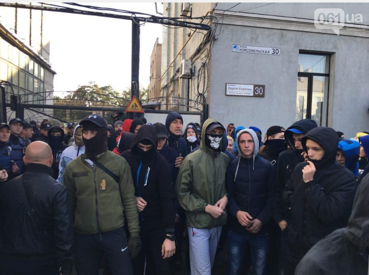 По словам очевидцев, парней в балаклавах организованно привезли на автобусе