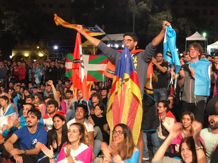 После закрытия участков для голосования на площади Каталонии в Барселоне собрались тысячи людей, которые ждут результатов референдума за независимость. Об этом сообщает корреспондент "Страны".