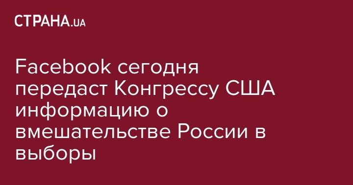 Facebook сегодня передаст Конгрессу США информацию о вмешательстве России в выборы