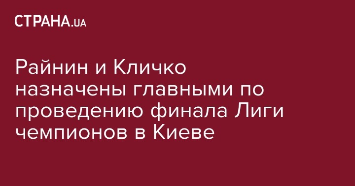Райнин и Кличко назначены главными по проведению финала Лиги чемпионов в Киеве