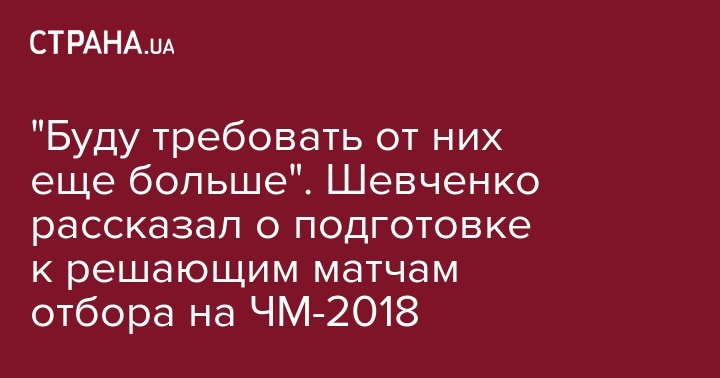 У нас будет два финала, и первый - это с Косово. Настрой на первую, и вторую игру должен быть очень высоким. Надеюсь, все это поймут. Если не поймут, то буду требовать от них это еще больше. Сбор в Харькове? Здесь рядом поле, условия отличные и закрытые от посторонних глаз. Тем не менее, мы здесь открыты для журналистов. Пожалуйста, приезжайте и пишите о нас.