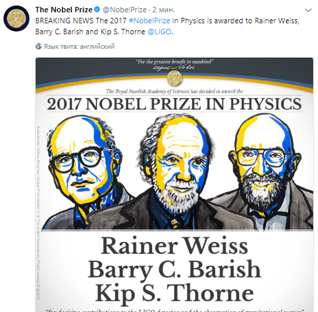 Во вторник, 3 октября, шведская королевская академия наук объявила лауреатов Нобелевской премии по физике 2017 года. Об этом сообщает N+1.