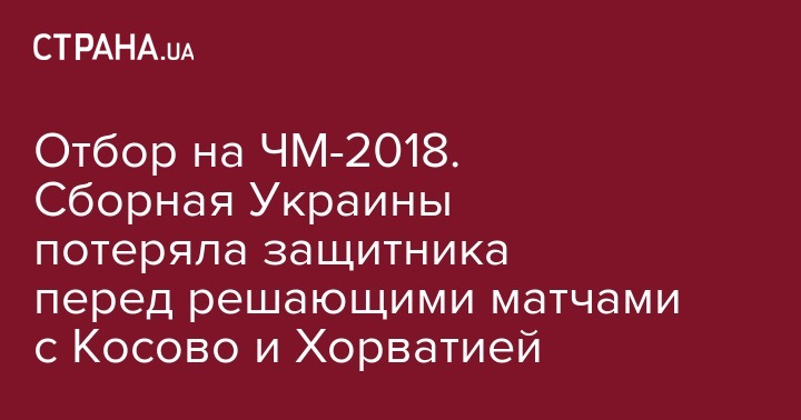 Отбор на ЧМ-2018. Сборная Украины потеряла защитника перед решающими матчами с Косово и Хорватией