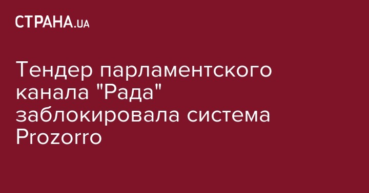 Система Prozorro заблокировала тендер парламентского канала "Рада", который собирался потратить 20 млн гривен на закупку оборудования для телерадиовещания. Об этом говорится в сообщении на сайте тендерных закупок.