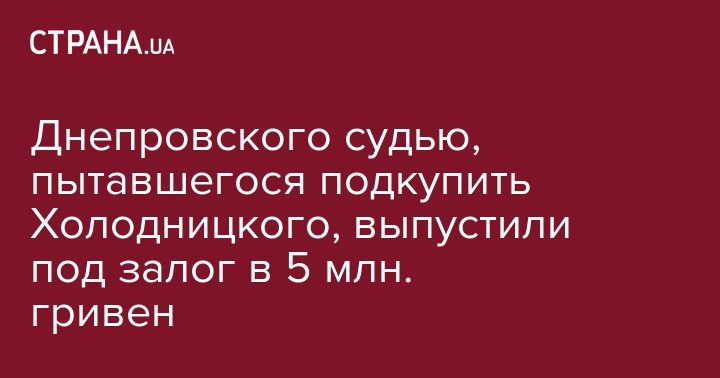 Днепровского судью, пытавшегося подкупить Холодницкого, выпустили под залог в 5 млн. гривен