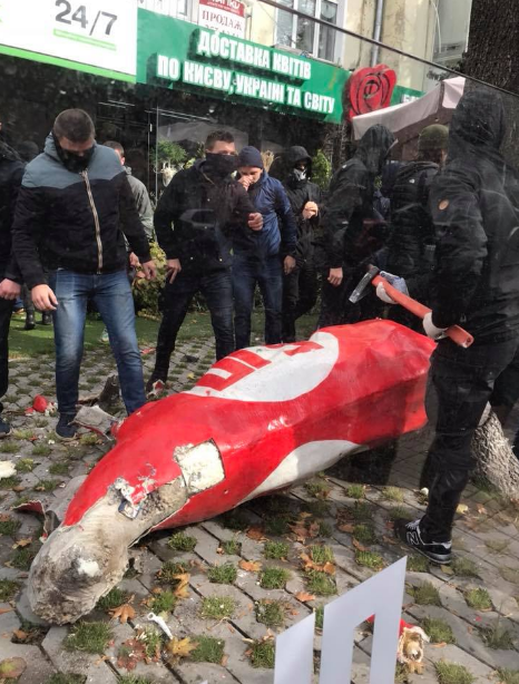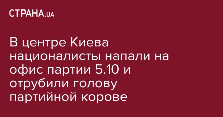 В центре Киева националисты напали на офис партии 5.10 и отрубили голову партийной корове