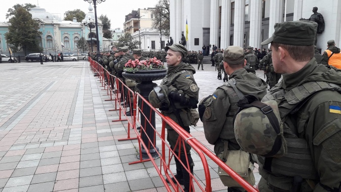 На время голосования по законопроектам о реинтеграции Донбасса, охрану Верховной Рады усилили дополнительными силами Нацгвардии и полиции. Об этом сообщает корреспондент "УП" с места событий.