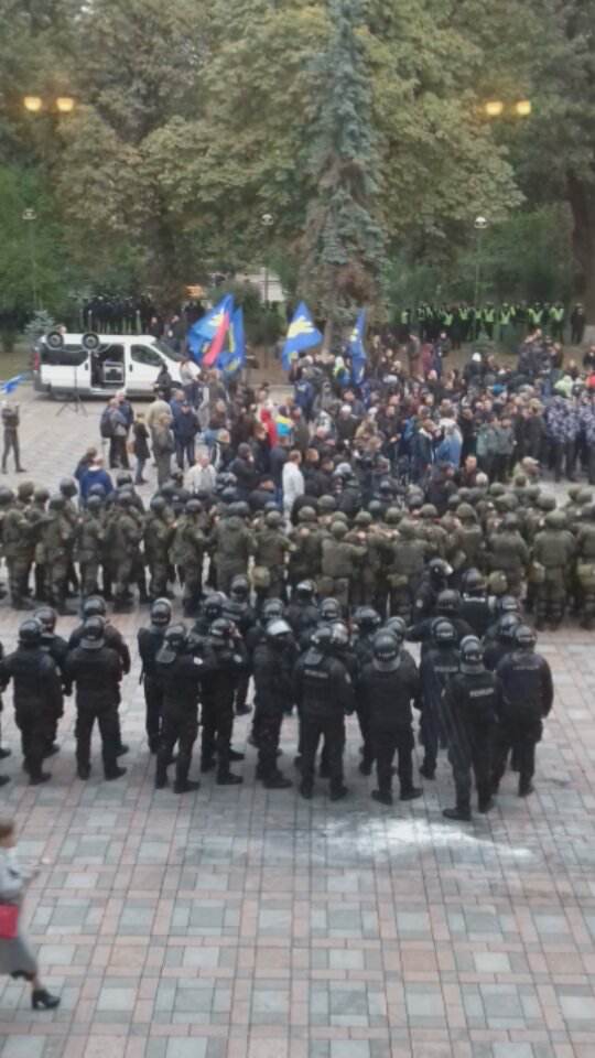 Об этом представитель "Нацкорпуса" сообщил и силовикам, которые стояли в оцеплении перед парламентом. После этого силовики окружили националистов, находящихся на площади перед Радой, взяв их в кольцо.