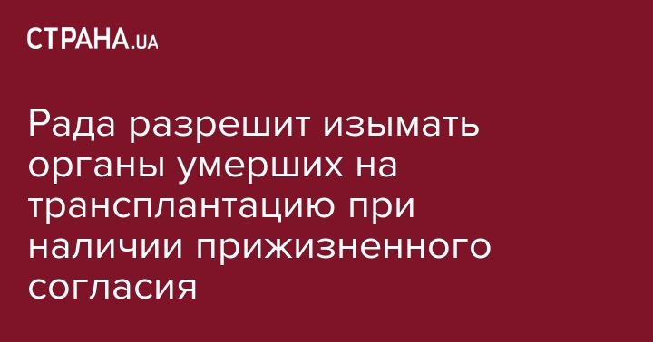 По итогам голосования Рада поддержала в первом чтении законопроект № 2386а-1, который разрешает трансплантацию органов от умерших граждан Украины, базируясь на презумпции несогласия. То есть, у погибшего или умершего человека можно будет изъять органы, только в том случае, если он при жизни дал свое письменное согласие на это.