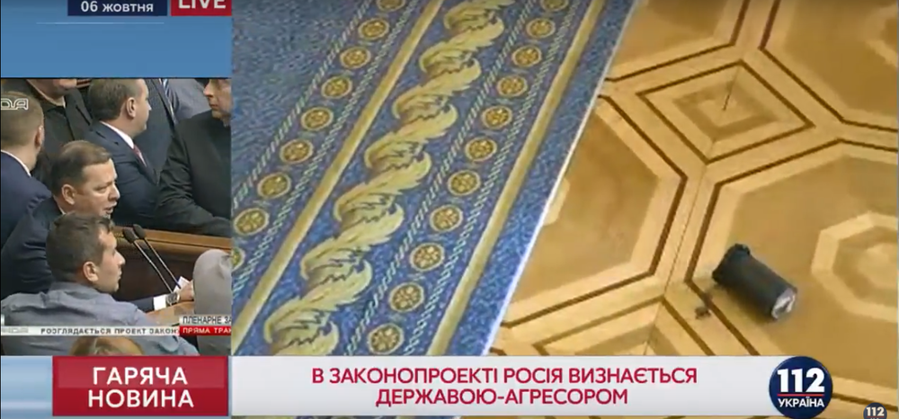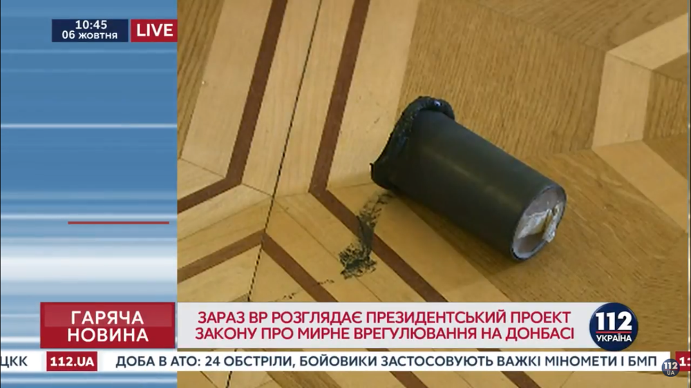 В зал Верховной Рады забросили дымовую шашку во время рассмотрения второго закона по Донбассу.