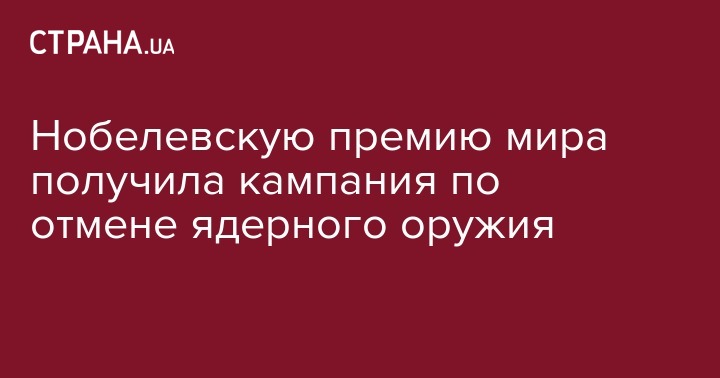 Нобелевскую премию мира-2017 получила Международная кампания по отмене ядерного оружия (ICAN). Об этом сообщается на сайте премии.