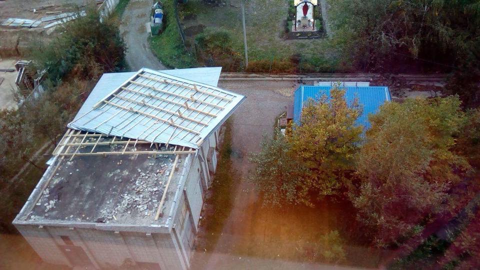 Также оборванные кабеля электроснабжения, а в одном из домов сорвало крышу.