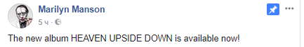 Мэрлин Мэнсон выпустил новый альбом под названием Heaven Upside Down. Об этом сообщается на официальной странице американского музыканта в Facebook.
