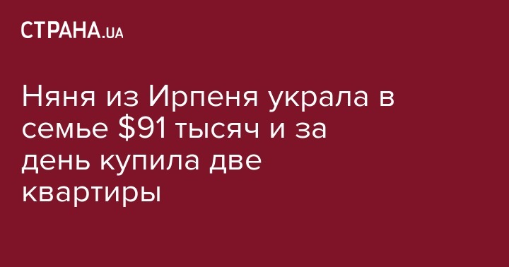 Няня из Ирпеня украла в семье $91 тысяч и за день купила две квартиры