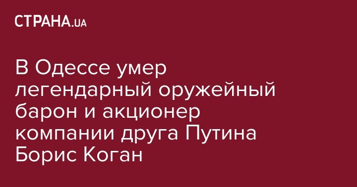 В Одессе умер легендарный оружейный барон и акционер компании друга Путина Борис Коган