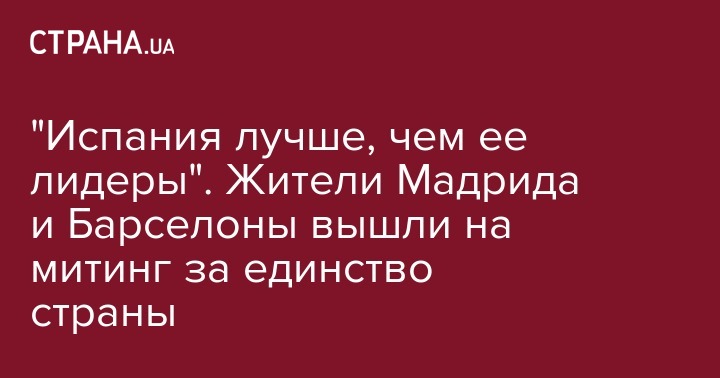 В каталонском городе Барселона также собралась демонстрация с призывом к политическому диалогу. Люди держат плакаты с надписями: "Испания является лучшей, чем ее лидеры" и "Давайте поговорим".
