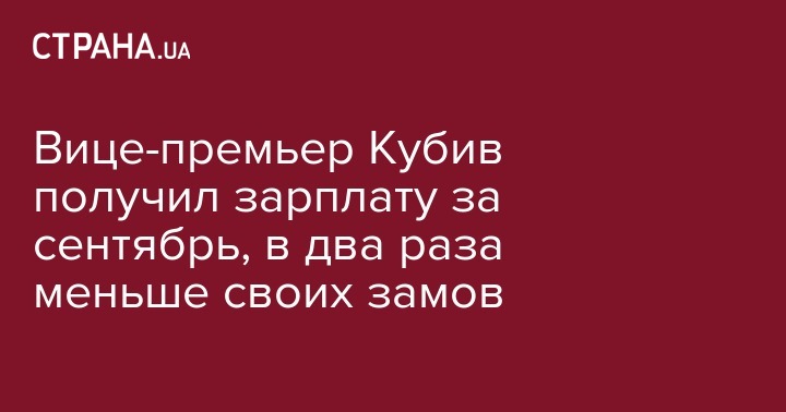 Заработная плата за сентябрь первого вице-премьер-министра - министра экономического развития и торговли Степана Кубива составила 44 тыс. гривен. Об этом сообщают Украинские Новости.