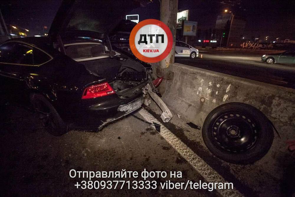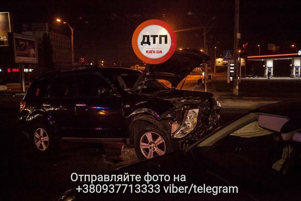Аварии случились 7 октября около 23:30 на перекрестке проспектов Оболонского и Степана Бандеры. Очевидцы ДТП утверждают, что "Subaru Forester" на большой скорости протаранил "Audi", которое двигалось впереди.