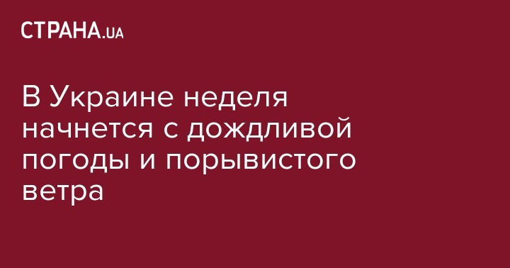 В Украине неделя начнется с дождливой погоды и порывистого ветра