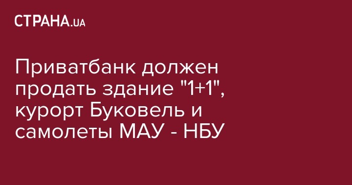 Замглавы НБУ Екатерина Рожкова заявила, что Приватбанк должен выставить на продажу горнолыжный курорт "Буковель", здание телеканала "1+1" в Киеве и самолеты авиакомпании "Международные авиалинии Украины" (МАУ). Об этом Рожкова сообщила в эфире радио "Вести" в программе "Деньги Блинова".