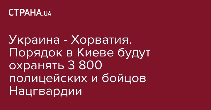 Во время футбольного матча Украина - Хорватия за порядком в столице будут следить около 3 800 правоохранителей. Об этом говорится в сообщении полиции Киева.
