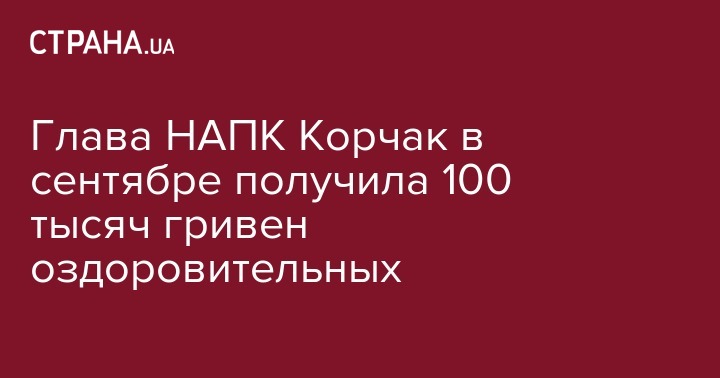 Председатель Национального агентства по вопросам предотвращение коррупции (НАПК) Наталья Корчак в сентябре получила 100 тысяч гривен "на оздоровление". Об этом говорится в ответе ведомства на запрос "Украинских новостей".