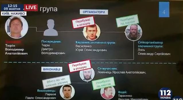 Получив задание от Тюрина-старшего, Василенко прибыл на территорию Украины в феврале 2017 года. Здесь он привлекает к делу своего товарища Александра Лося. Оба приезжают в Киев и начинают подыскивать исполнителей – бывших участников АТО. Лось обращается к Левенцу – раньше они вместе сидели в одном из следственных изоляторов Днепропетровской области.