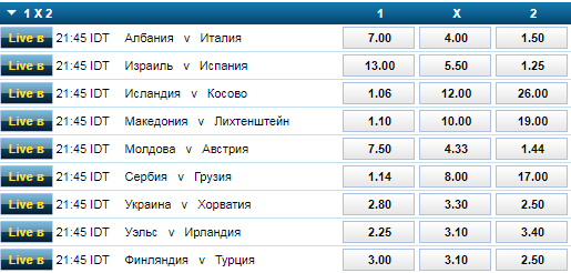 Букмекеры авторитетной британской отдают предпочтение, небольшое правда, в сегодняшнем поединке именно Хорватии. Ставки на победу Украины принимаются с коэффициентом 2,80, успех "клетчатых" котируется по 2,50. А вариант с ничьей идет с кэфом в 3,30.