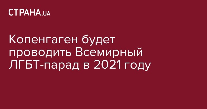 Всемирный прайд-парад (WorldPride) пройдет в столице Дании Копенгагене в 2021 году, передает The Lokal.