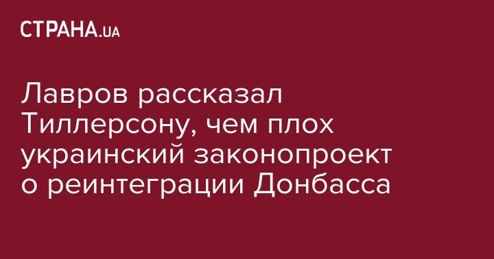 Лавров и Тиллерсон "подчеркнули важность продолжения контактов по этому каналу в интересах выработки реалистичных подходов к выполнению согласованного в Минске "Комплекса мер", говорится в сообщении российского МИД.