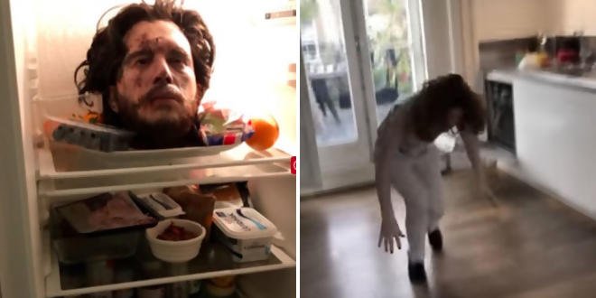 Он показал видео, как в этом году положил в холодильник бутафорскую голову, похожую на его собственную.